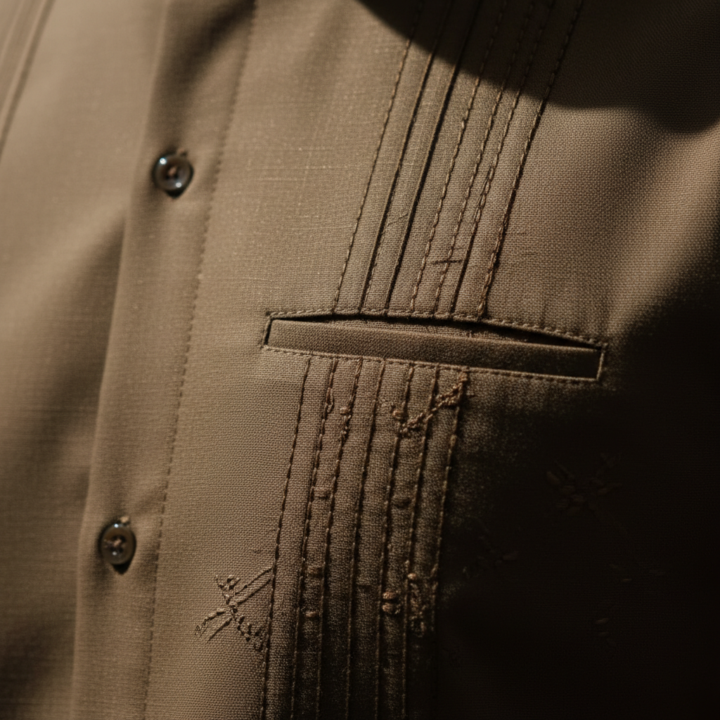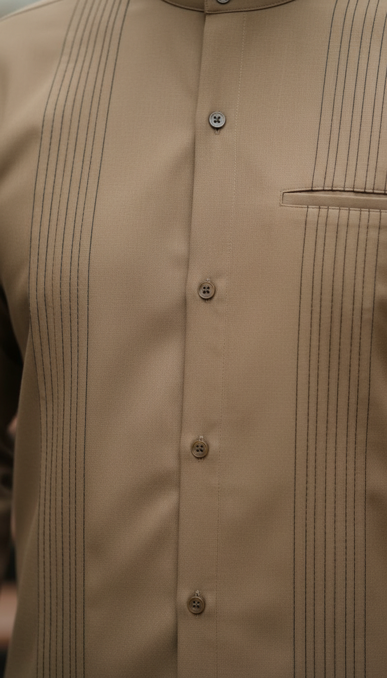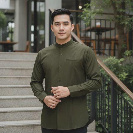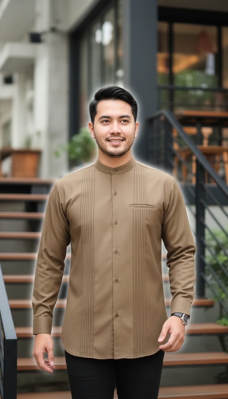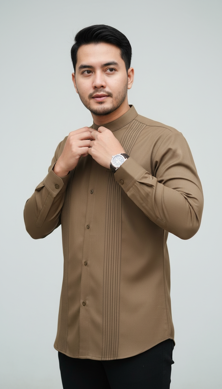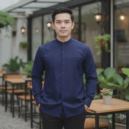 Pola cutting yang pas di tubuh, memberikan siluet gagah dan rapi tanpa mengorbankan kebebasan bergerak.